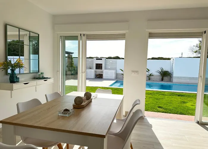 Vila Villa Luna Novo Santi Petri je umístěna ve městě Chiclana de la Frontera, 3 km od Playa Sancti Petri, chlubí se plaveckým bazénem, které jsou poskytovány na terase. K této vile patří 3 ložnic, a také pohovka, místnost na posezení a TV s plochou obrazovkou se satelitními kanály v pokojích.